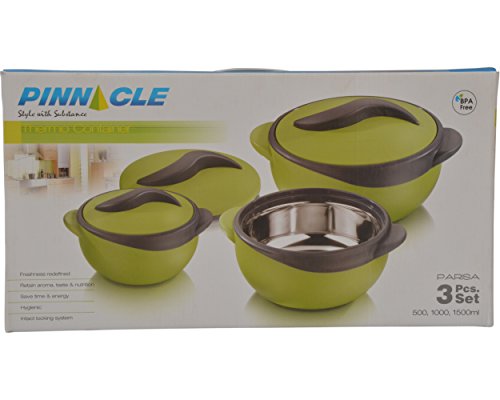 - ★ Brand : Pinnacle, Type : Casserole Set, Additional Features : Freshness Redefined, Retains Aroma and Nutrition, Soft Touch Feeling, Intact Locking System, FDA Approved and BPA Free, Package Contents : 3 Casseroles