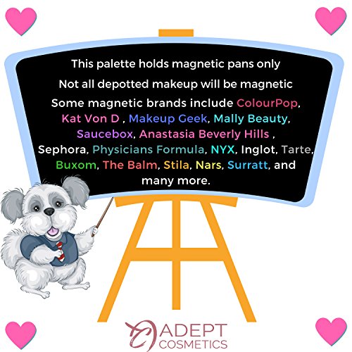 Magnetic Empty Makeup Palette, Double Sided with Divider, Extra Large, for depotted eyeshadow, blush, baked powders, foundation powder and more - Black