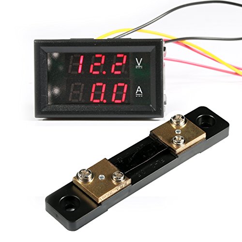 GEREE Dual Display Volt Amp Voltmeter Ammeter 0.28" LED Digital DC 0-100V/50A Voltage Current Measurement Meter with Shunt