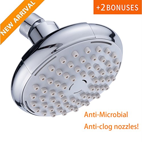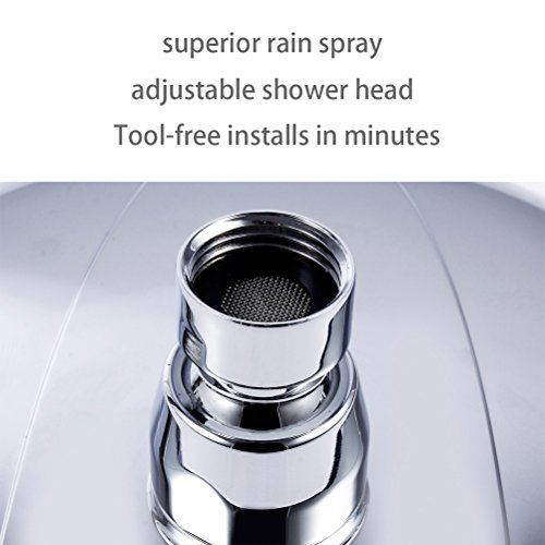 - SHOWER HEAD FEATURES: Large 4.2 Inch showerhead, Self-Cleaning Rub-Clean Jets (for easy cleaning and preventing lime buildup), Angle-Adjustable (Adjustable ball joint), Modern Design, Highest Quality ABS material, Premium Chrome Finish, Designed for superior performance under low water pressure conditions, Quick to install tool-free, Precision Engineered High Pressure jets, Limited 10 Years Warranty
