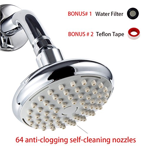 - SELF-CLEANING NOZZLES: 64 Powered Anti-Clogging Silicone Jets - Prevent lime and hard water deposits