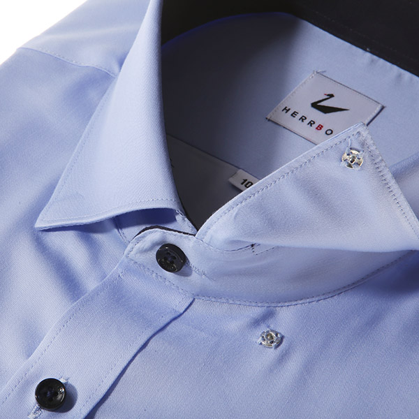블루솔리드 원버튼스냅카라 반소매슬림핏셔츠