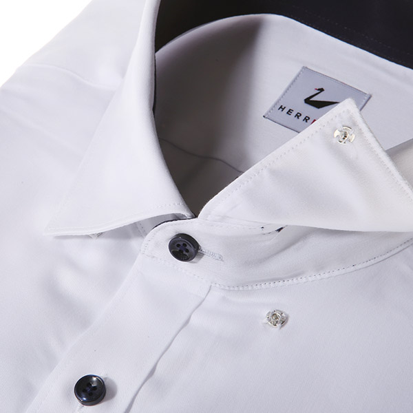 화이트솔리드카라네이배색 원버튼스냅슬림핏셔츠
