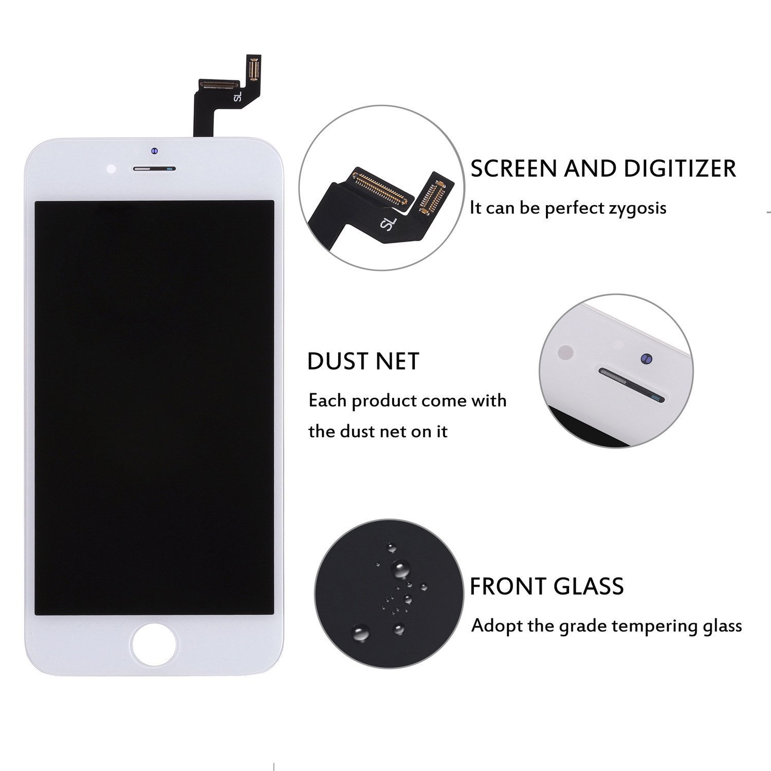 Quantity 1: iPhone 6S 4.7 inches replacement front panel (front glass digitizer) touch panel liquid crystal panel set repair tool included