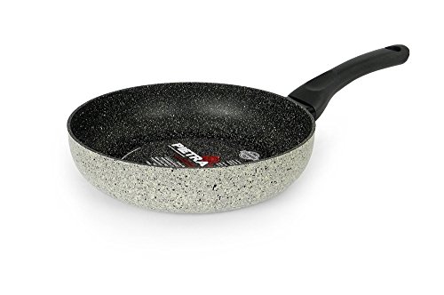 Made in Italy, floral pietra viva, food aluminum body. This 100% food aluminum body provides high energy efficiency and fast heating saves nutritive value. Pietra viva stems from the need to offer products with special shapes, more capacious, with competitive prices but without losing focus on quality. The outer covering is our elegant porcelain enamel with stone effect while the magma-tech inner coating is offered in its basic black version. The new shapes, which can offer greater Capacity, make this line suitable for large families. Pietra viva the oldest material today lives again in new shapes to serve those who love nature in the kitchen. It is in fact frostone that floral draws inspiration for new 4 lines of products, each with different features but all of them with a common denominator: magma-tech non-stick coating. Reinforced with micro mineral particles, this coating is designed for maximum wear resistance, stable and efficient performances, and healthy fat-free cooking, both for intensive use and for quick preparations. With particular attention to the purity of the materials used, magma-tech is therefore ideal for those who love 100% genuine cooking. Stability, strength and reliability, these are the characteristics of an eternal and natural material as the stone, which today returns to the kitchen with a modern and technologically avant-garde design.Feature