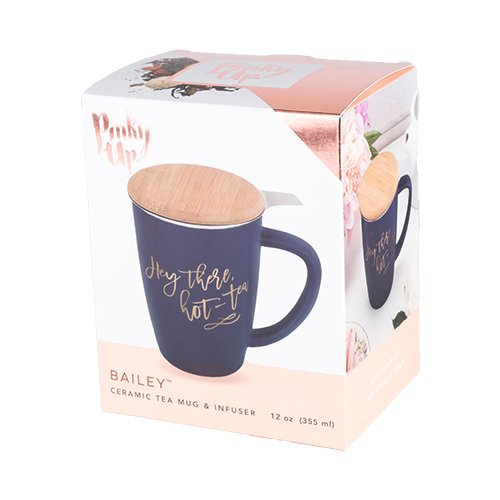 Studio : Pinky Up Publisher : Pinky Up Binding : Kitchen Product Description Some people are super organized and time everything in their lives perfectly. Others (ahem) brew cups of tea and forget to drink them. The Bailey Mug Infuser protects the distractible ones among us from cold tea by providing a wooden lid to keep it hot. It also doubles as a coaster for the times we forget to grab one! 0