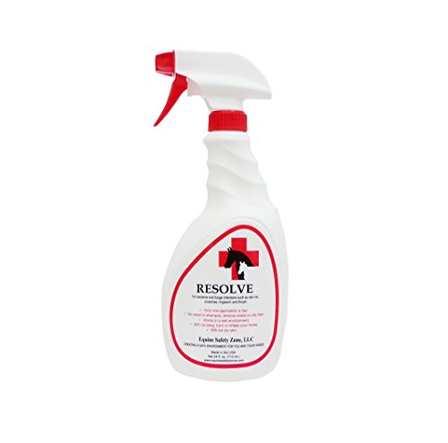 Studio : Equine Safety Zone, LLC Publisher : Equine Safety Zone, LLC Binding : Health and Beauty Product Description Our RESOLVE formula was originally developed to prevent, under extreme conditions, combat dermatological problems for our military. It was tested and approved by the Surgeon General for use by all branches of the armed services and awarded a federal contract as a Department of Defense antimicrobial. The solution was then reformulated to work with equine skin disorders. Skin disorders that respond to RESOLVE are rain-rot and other conditions known as scratches, mud-rash, rain scald and saddle rash, thrush, ring worm and other skin irritations such as insect bites and itchy tails. 0