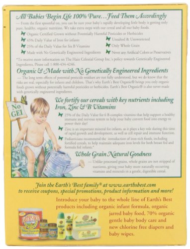Earth's Best Certified Organic Whole Grain Oatmeal Cereal -- 8 oz