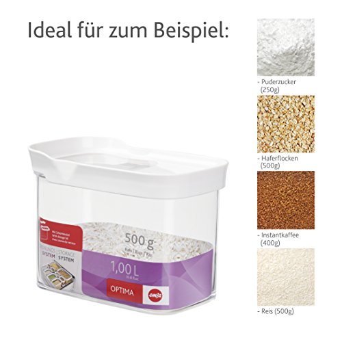 Emsa Dry Food Storage Container "Optima" Rectangular 33.8 fl oz In White/Transparent,, Transparent/White