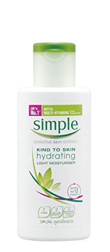 -. Binding : Health and Beauty -. Brand : Simple -. EAN : 5011451103931 -. Feature : Please be aware that unless expressly indicated otherwise, Cooking Marvellous are not the the manufacturer of this product. Product packaging may vary from what is shown on this listing. We recommend that you do not rely solely on the information presented on our listing. Please always read the labels, warning and directions provided before using or consuming the product. -. IsAdultProduct : 0 -. Label : Grocery -. Manufacturer : Grocery -. Model : 77094 -. MPN : 77094 -. PackageQuantity : 1 -. PartNumber : 77094 -. ProductGroup : Beauty -. ProductTypeName : BEAUTY -. Publisher : Grocery -. Studio : Grocery -. Title : Simple Kind to Skin Hydrating Light Moisturiser (125ml) -. UPC : 721864924324