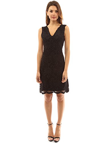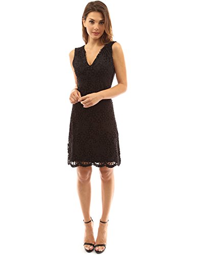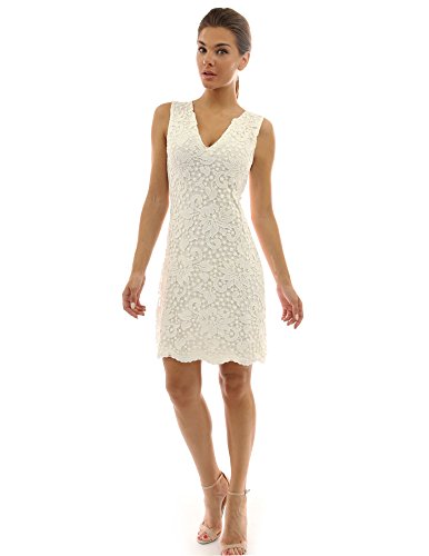 Product DescriptionPattyBoutik V Neck Sleeveless Floral Crochet Lace Overlay A-Line Dress. Model in pictures is 5 feet 8 inches (173cm) tall wearing size S.0