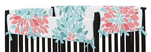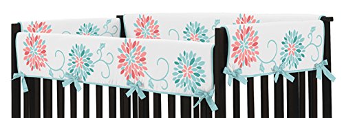 - Title : Baby Crib Side Rail Guard Covers for Modern Turquoise and Coral Emma Bedding Collection
