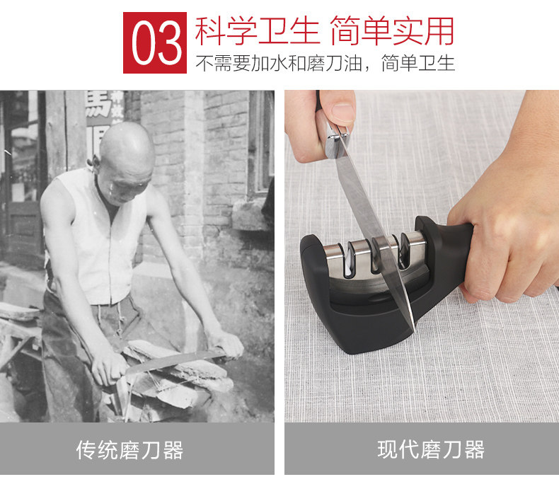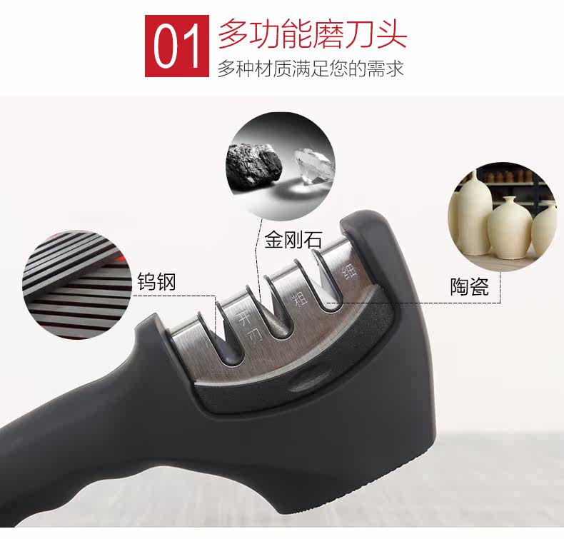 • 3-in-1 sharpening: fine, medium, and coarse