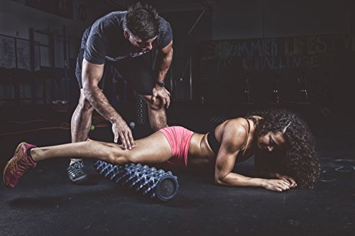 The RumbleRoller Manipulates Soft Tissue - Like a Massage Therapist. The surface of the RumbleRoller contains specially designed bumps that are firm, but flexible, much like the thumbs of a massage therapist. As you roll over the top of the RumbleRoller, the bumps continuously knead the contours of your body, gently stretching soft tissue (muscle and fascia) in multiple directions. This action erodes trigger points, helps restore flexibility, and brings quick relief to common types of muscular pain. By design, the RumbleRoller's bumps are firmer than muscle tissue, but much softer than bone, so they deflect out of the way if they contact your spine or other bony protrusions. Through simple techniques, you can control the amount of pressure the bumps apply to your body. The bumps are closely spaced to one another (< 2" apart), so several of them simultaneously contact your body during most exercises. However, with a slight shift of your body, you can reduce your area of contact with the RumbleRoller, which increases pressure and provides deeper, more penetrating relief.Feature