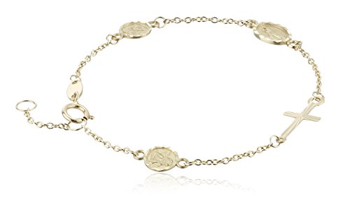 -. Title : Girls' 14k Yellow Gold Miraculous Medal, Angel and Cross Bracelet, 6"