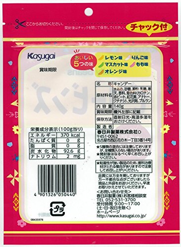 原材料:水あめ、砂糖、澱粉、乳糖、寒天、香料、着色料(カロチン、赤ビート、紅花黄、アナトー、クチナシ)、光沢剤、プルラン
