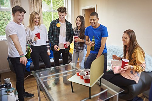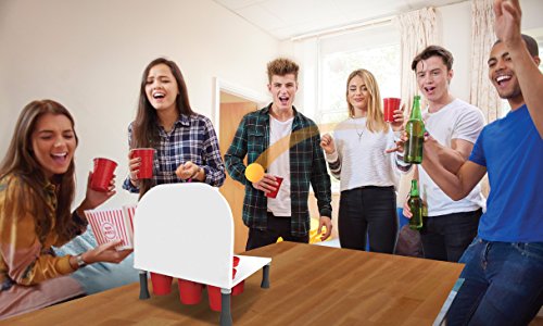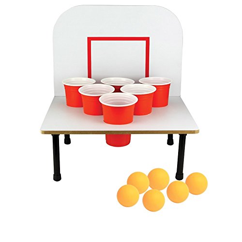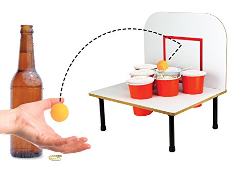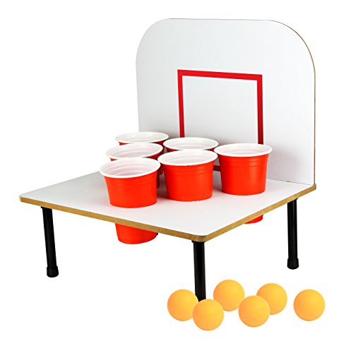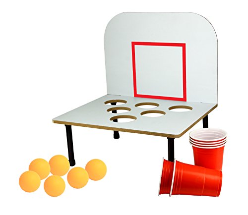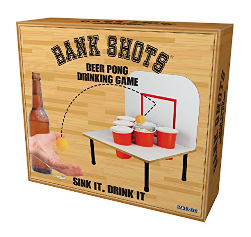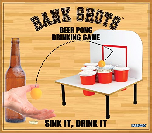 Studio : Barbuzzo Publisher : Barbuzzo Binding : Kitchen Product Description An upgrade to beer Pong! bank shot beer Pong adds sport to beer Pong. Lay-up and swish the ball into the cup, bank it off the backboard, or bounce it off the Court. CLASSIC GAME, NEW TWIST: Bank Shots takes the classic game of Beer Pong that we've all come to love to a whole other level with a backboard. EASY TO PLAY: Just pour your favorite beer into the red cups provided, and play your favorite variation of beer pong or make your own rules. PERFECT FOR ANY OCCASION: bring it to parties, tailgates, kickbacks, BBQs, pool parties, game day, and other shindigs to be the king or queen of the party! GREAT GIFT: The funnest gift that will surely get a laugh! Great for birthdays (particularly 21sts), mancave, bachelor parties, groomsmen, etc. THE MORE THE MERRIER: Recommended for 2-6 players, but we won't judge you if you play solo! CUPS AND BALLS INCLUDED: Six 16-Ounce / 473-Milliliter red solo cups and six orange balls 0