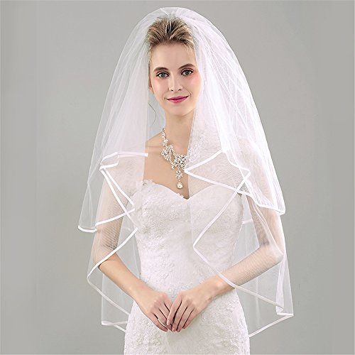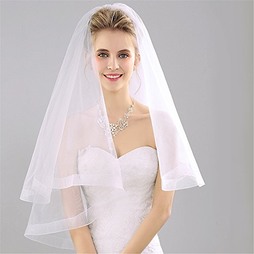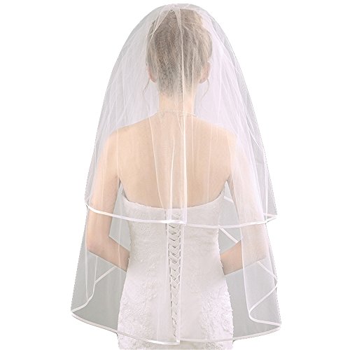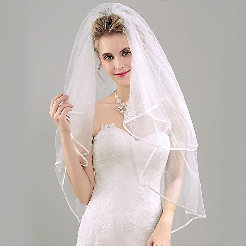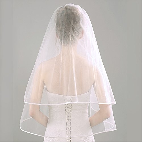 Product DescriptionFabric:Import American yarnVeil tier:2 tierSize Length:1st tier 27.5inch(70cm),2nd 39.3inch(100cm) Width:57.4inch(146cm)Color:Picture colorAdd a dramatic twist to your bridal look with this 100% Handmade Designers Fashion veil!0