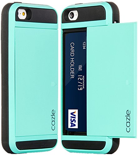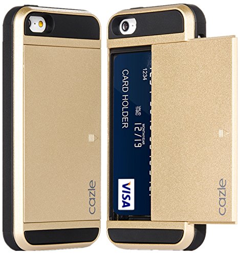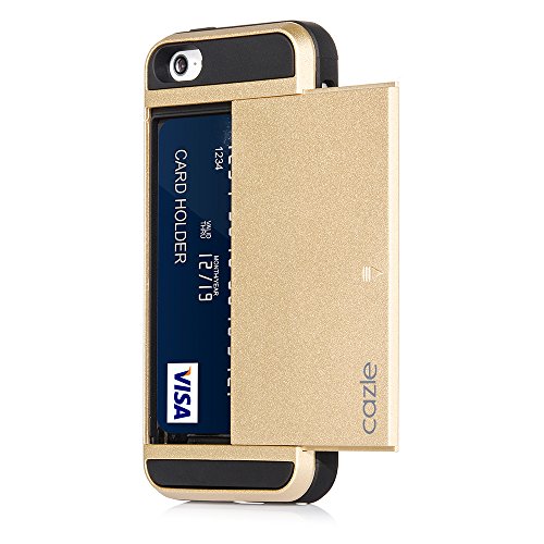 iPhone SE, iPhone 5S iPhone 5, Dual-layer Heavy Duty Matte Rugged Protective Cover with Slider ID Credit Card Slot Cash Holder for Apple New iPhone SE iPhone 5S iPhone 5 by Cazle (Gold)