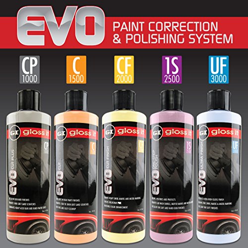 Gloss-It EVO Cut Plus Polish 1000 offers the latest in paint polish technology and is a part of our revolutionary color matched EVO Paint Correction and Polishing System.  This is our heavy cut and most aggressive polish.