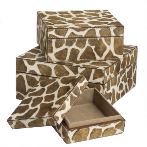 Lazy Susan Nested Faux Pony Giraffe Print Boxes, 10 x 4.5-Inches, Set of 3