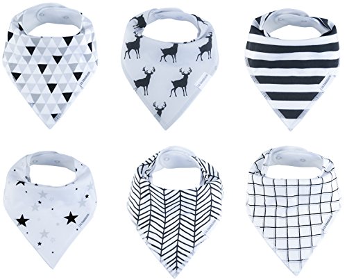 Baby Bandana Drool Bibs 6 Pack for Boys and Girls, Hypoallergenic Soft Organic Cotton With Snaps for Teething Drooling, Unisex Baby Shower Gift, Newborn Registry Gift (Modern Black White monochrome)