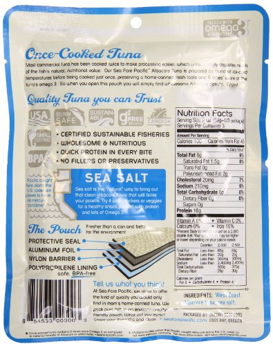 Sea Fare Pacific Wild Caught Albacore Tuna, Salt Pouch, 6 Ounce (Pack of 12)