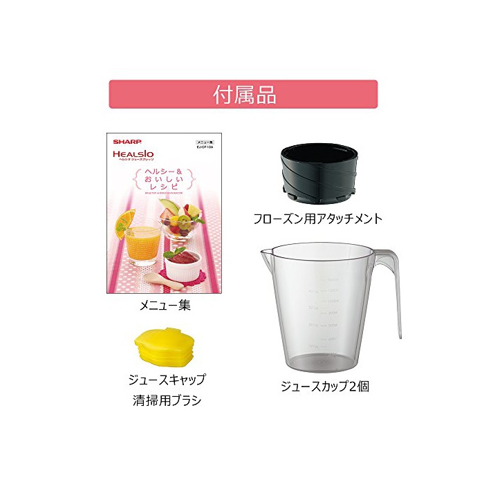 부속품:쥬스 컵×2개,냉동용 어태치먼트,쥬스 캡,청소용 브러시,취급 설명서,메뉴집