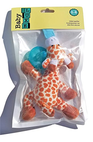 -. Binding : Baby Product -. Brand : BabyLuxe! -. EAN : 0703694888724 -. Feature : ✔MULTIFUNCTIONAL: The giraffe keeps your baby occupied while awake and the pacifier helps soothe them to sleep. It is the perfect sized toy to take on long flights and road trips. It also makes a great car seat and stroller toy for your little one. / ✔SAFE: The pacifier is made of FDA approved, BPA free silicone; which promotes the natural development of teeth and gums. It is recommended for babies up to 6 months old. (Babies without teeth or in teething stage). / ✔CONVENIENT: This toy can be spot cleaned easily with warm, soapy water. The detachable pacifier can be removed for cleaning or replaced with your baby's favorite pacifier. / ✔GROWS WITH YOUR CHILD: Once your baby outgrows the pacifier, it can be discarded and they will enjoy the plush toy for years to come. / ✔PERFECT BABY SHOWER GIFT: The Babyluxe Giraffe is great for boys and girls; which makes it the perfect surP.R.Ise for any nursing or expectant mother. It is also a popular addition to jungle or safari-themed nurseries. -. Label : BabyLuxe -. Manufacturer : BabyLuxe -. MPN : BLG8724 -. PartNumber : BLG8724 -. ProductGroup : Baby Product -. ProductTypeName : BABY_PRODUCT -. Publisher : BabyLuxe -. Studio : BabyLuxe -. Title : BabyLuxe Giraffe Infant Plush Toy and Pacifier Holder - Gender Neutral, Detachable -. UPC : 703694888724