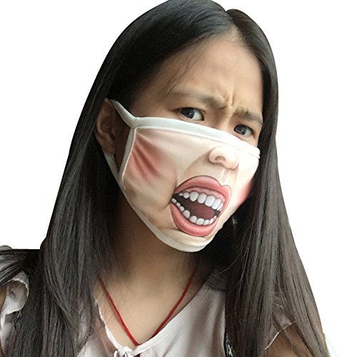-. Feature : Material:Cotton blended / Protects your mouth and face from dust,wind,cold,fog & haze. / Suitable for outdoor,household,hospital,public places,etc. / Funny face design mask. / it is very comfort to wear