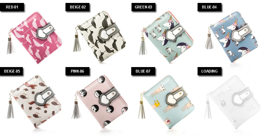Character:Cartoon birds, unicorn, squirrel wallet
