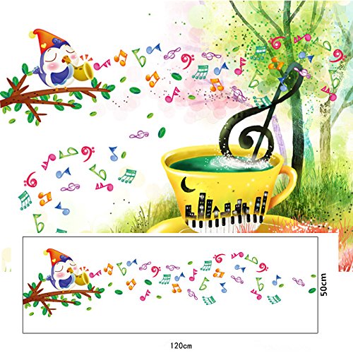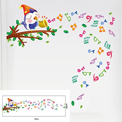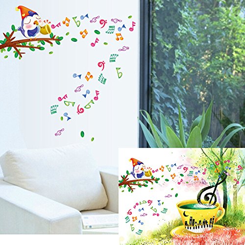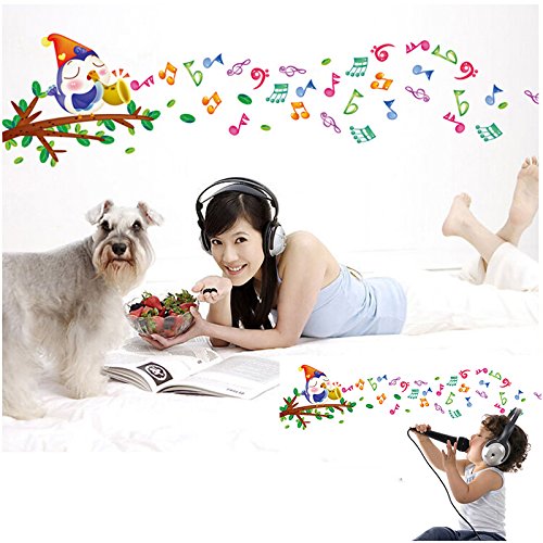 JUNKE 1 Pcs House Room Sticker Removable Birds on a Branch Peel and Stick NurseryVinyl Wall Stickers Mural Music Bird for Kids