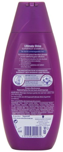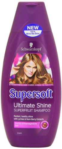 -. Feature : Schwarzkopf Supersoft Ultimate Shine Superfruit Shampoo 400ml. / For dull & unmanageable hair. / Nourishes and smoothes the hair structure. / With Superfruits rich in vitamins and antioxidants. / Hair full of suppleness and radiant mirror-like shine.