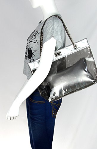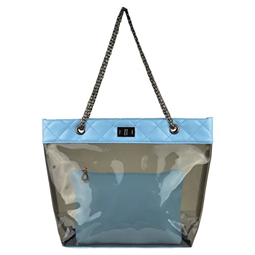 -. Feature : Size: 11.8 x 4.3 x 11 inches / 2 in 1 organizer bag; Waterproof; Turn-lock closure; Chain Strap / Exterior clear bag is NFL Stadium Approved, It also suitable for retail, concerts, corrections, casinos, stadium events etc / Interior zip bag to conceal personal items you don't want to been saw in your handbag / Perfect to used as beach bag, work bag, shopping bag, travel bag or diaper bag.