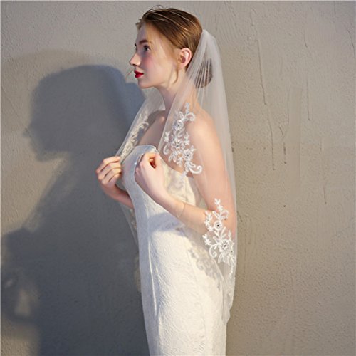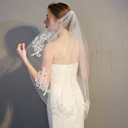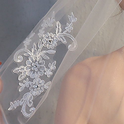 - Color: Off-White. - Material: Lace. - Size: 90x150cm / 35.4x59.1inch(LxW). - This beautiful wedding veil suits all brides well. - This veil is easy to attach to the hair through a metal comb so it won't add trouble to any of the preparation plans already set in stone. - This veil completes the look that you are looking for on the biggest day of your life. - HANG and STEAM: To take care for your veil and obtain a good shape to match your bride dress, please hang it when it is spare and steam it when necessary. Package Including 1 x Simple and Elegent Crystal Beaded Short Bridal Veils with Lace Appliques (Off-White) 0