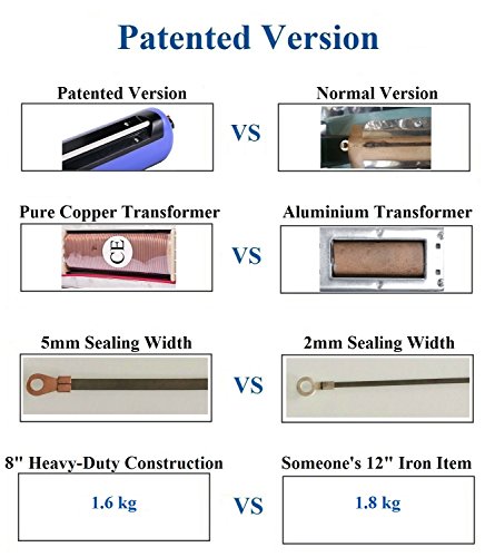 - Support All Heat Sealable Material Bags: With the patent of overheating protect function, this is a perfect sealer to seal Kel-F, Mylar, Polyflex, P.V.A., Polyethylene, Polyurethane, Polyvinylchloride, Polypropylene, Pliofilm, Tivac, Saran and all other heat sealable material bags.