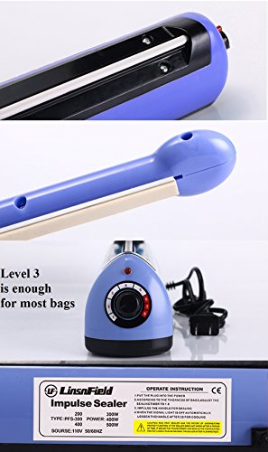 LinsnField 8" 300W Universal+ Impulse Heat Bag Sealer with 1 Extra Strip for Never Burn Out, Blue