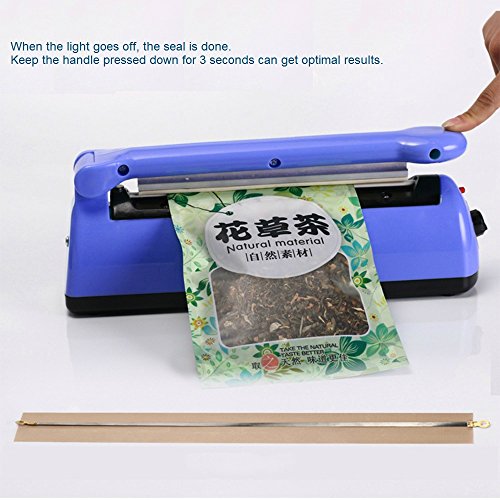 - Beautifully Styled With Versatility: Beautifully colored by blue to fit into any modern kitchen. With its light weight and ergonomically designed one-key-operate handle, it is easy to use and easy to clean. An useful handy plastic sealer for Camping, Costume Ball, and Travelling.