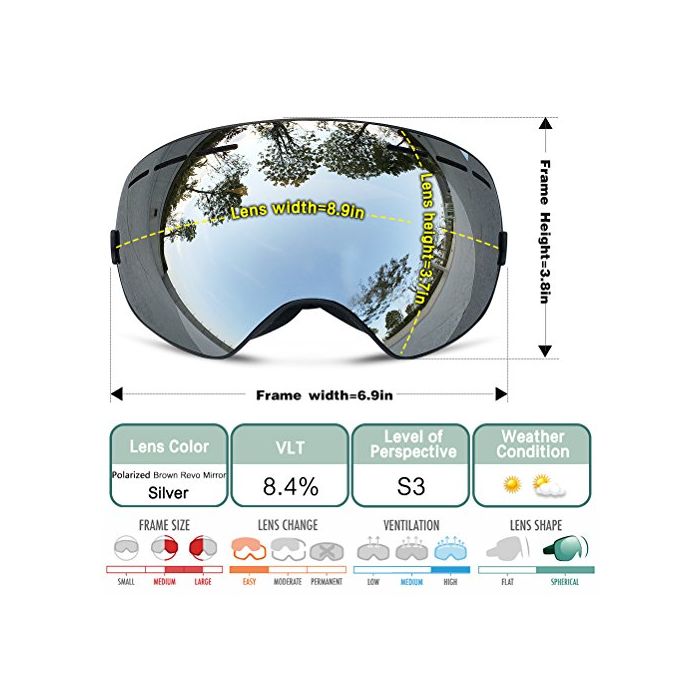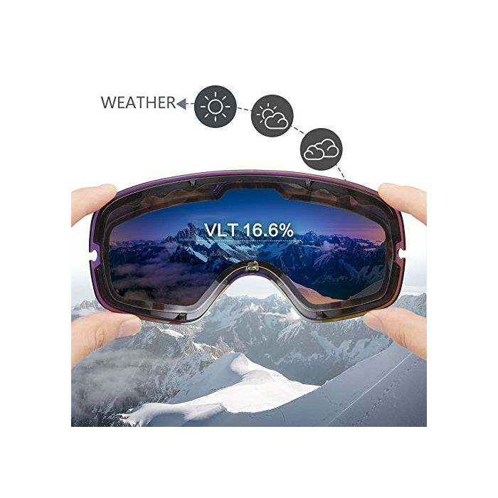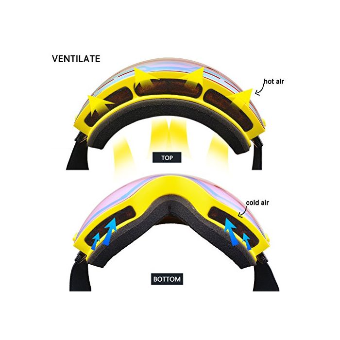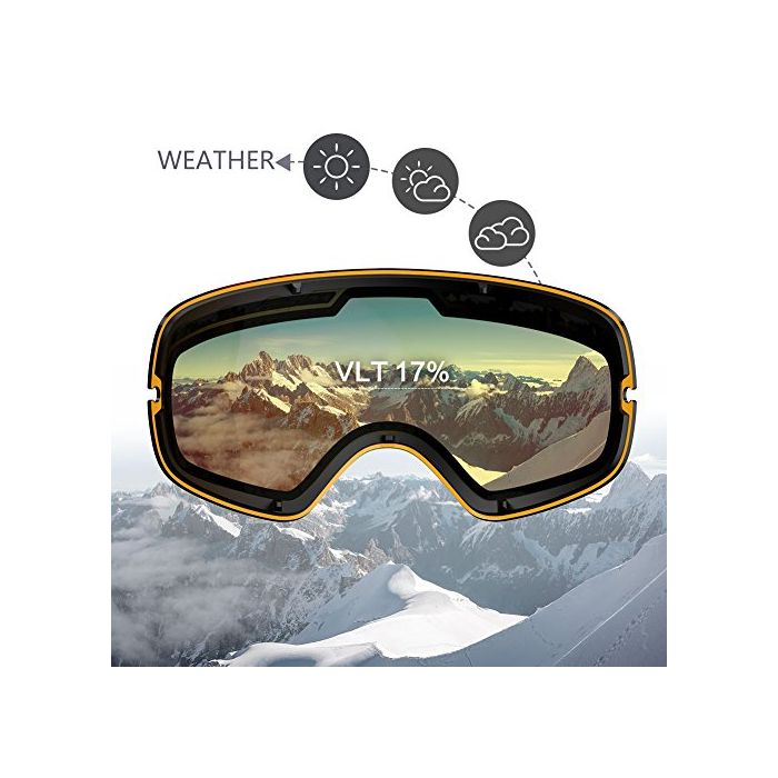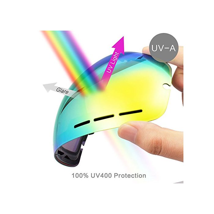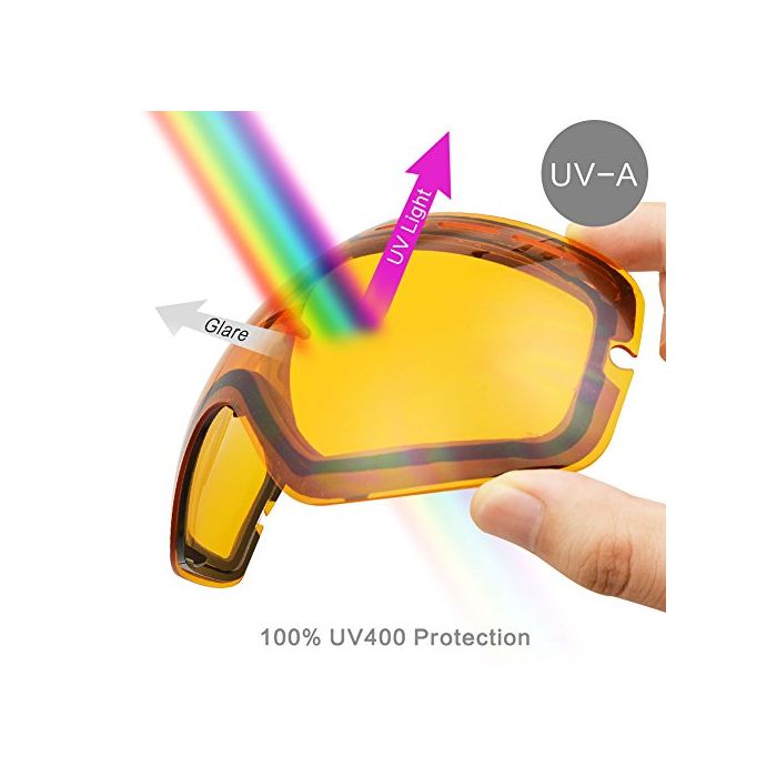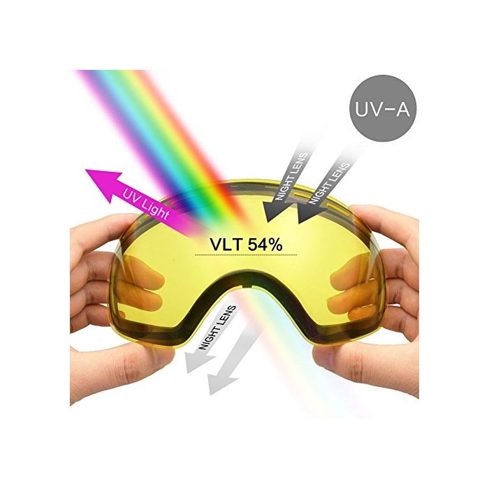 스노보드 고글 렌즈:이중층 큰 구면 렌즈 - 외층은 방풍 렌즈,내층은 방담렌즈이다.자외선 uv컷,흐림금지,거미 # 멈추어.써니 일간을 위한 편광 렌즈,흐림이나 밤의 시간의 스키를 위한 옐로우 렌즈.다른 색조와 가시 광선 투과율은,눈(째)의 피로를 경감하고, 당신이 등 범프,도랑을 보는 것을 구합니다.