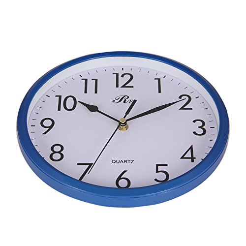 RUIFA Indoor Silent 10-Inch Precedent Decorative Wall Clock with Arabic Numerals (Blue)
