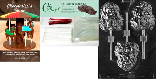 Cybrtrayd Large Santa Pop Chocolate Mold with Chocolatier's Bundle of 25 Lollipop Sticks, 25 Cello Bags, 25 Red Twist Ties and Chocolatier's Guide