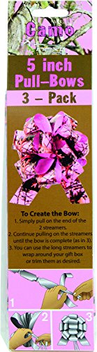 Product DescriptionNext Camo Pink 5 Inch pull bow. Three 5 inch pink camo pull bows per pack. simple instructions easy to make0