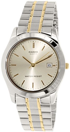 Brand, Seller, or Collection Name:Casio Model number:MTP-1141G-9ADF (A411) Part Number:MTP-1141G-9ADF (A411) Item Shape:Round Dial window material type:Mineral Display Type:Analog Clasp:Deployment-clasp Case material:Stainless steel Case diameter:37 millimeters Case Thickness:9 millimeters Band Material:Stainless steel Band length:Men's Standard Band width:18 millimeters Band Color:Two-Tone Dial color:Gold Calendar:Date Special features:measures-seconds Item weight:16 Ounces Movement:Japanese quartz Water resistant depth:30 Meters
