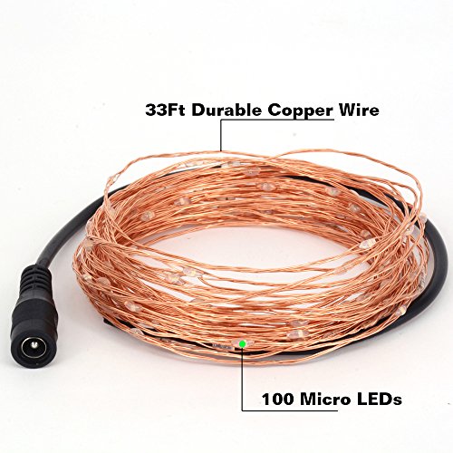 - Flexible & Durable: 100 micro super bright LED lights on 33Ft long ultra-thin copper wire with 3 inches distance between LED bulbs, you can use it to cover virtually any area or structure and increase the visual appeal in your setting
