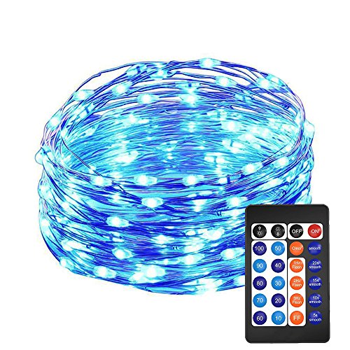 HAHOME Dimmable Fairy String Lights 33Ft 100 LEDs Starry Lights with Power Supply and Remote,Blue