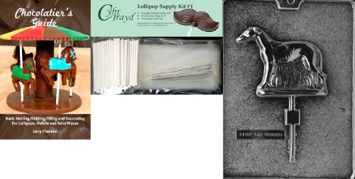Cybrtrayd Greyhound Lolly Dog Chocolate Candy Mold with Chocolatier's Bundle, Includes 25 Lollipop Sticks, 25 Cello Bags and 25 Silver Twist Ties