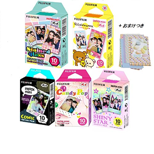 -. Feature : インスタントカメラ チェキ用フィルムの絵柄バージョン / ISO感度:ISO800 / フィルムサイズ : 86×54mm / 画面サイズ : 62×46mm / 1箱10枚 × 5箱 セット 合計50枚