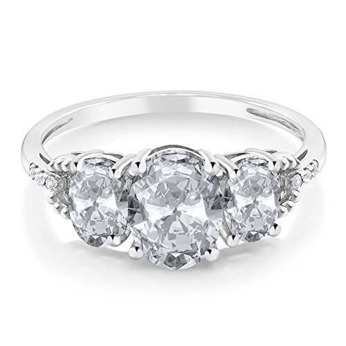 -. Title : 10K White Gold Diamond Accent Three-Stone Engagement Ring set with 2.35 Ct Oval White Topaz (Available in size 5, 6, 7, 8, 9)