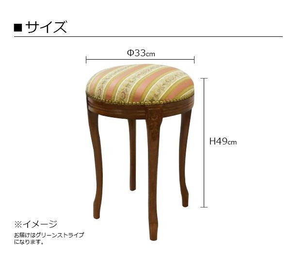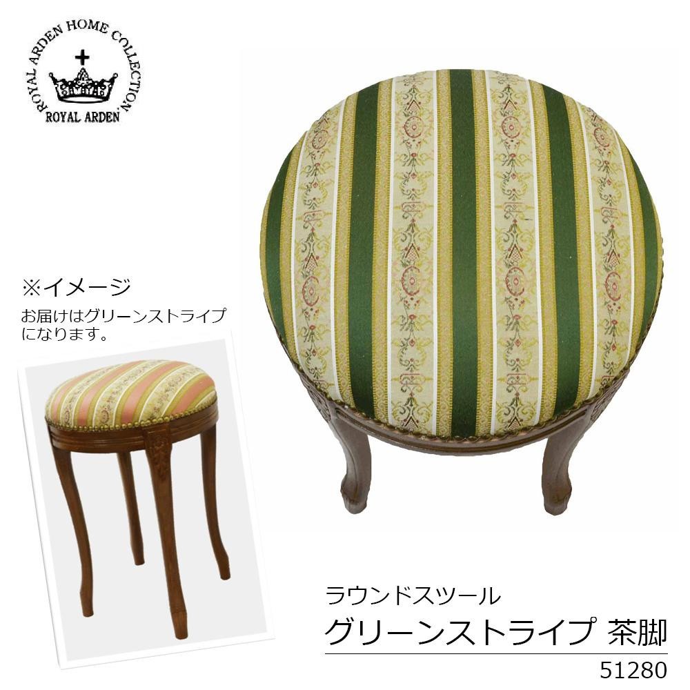 アンティーク調のおしゃれなスツールです。エレガントなお部屋にぴったり。 製造国:イタリア 素材・材質:脚:天然木ビーチ材ファブリック:ポリエステル100% ※サプライヤー直送品 ※2019年5月上旬入荷分予約受付中【商品名】ロイヤルアーデン イタリアスツール ラウンドスツール グリーンストライプ 茶脚 51280