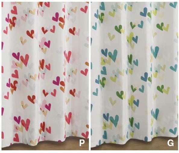 | キュートなハートが散りばめられた可愛い遮光カーテン! |